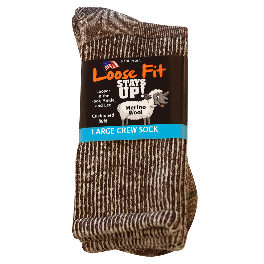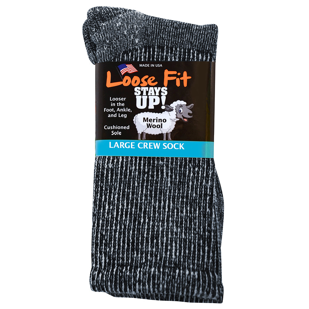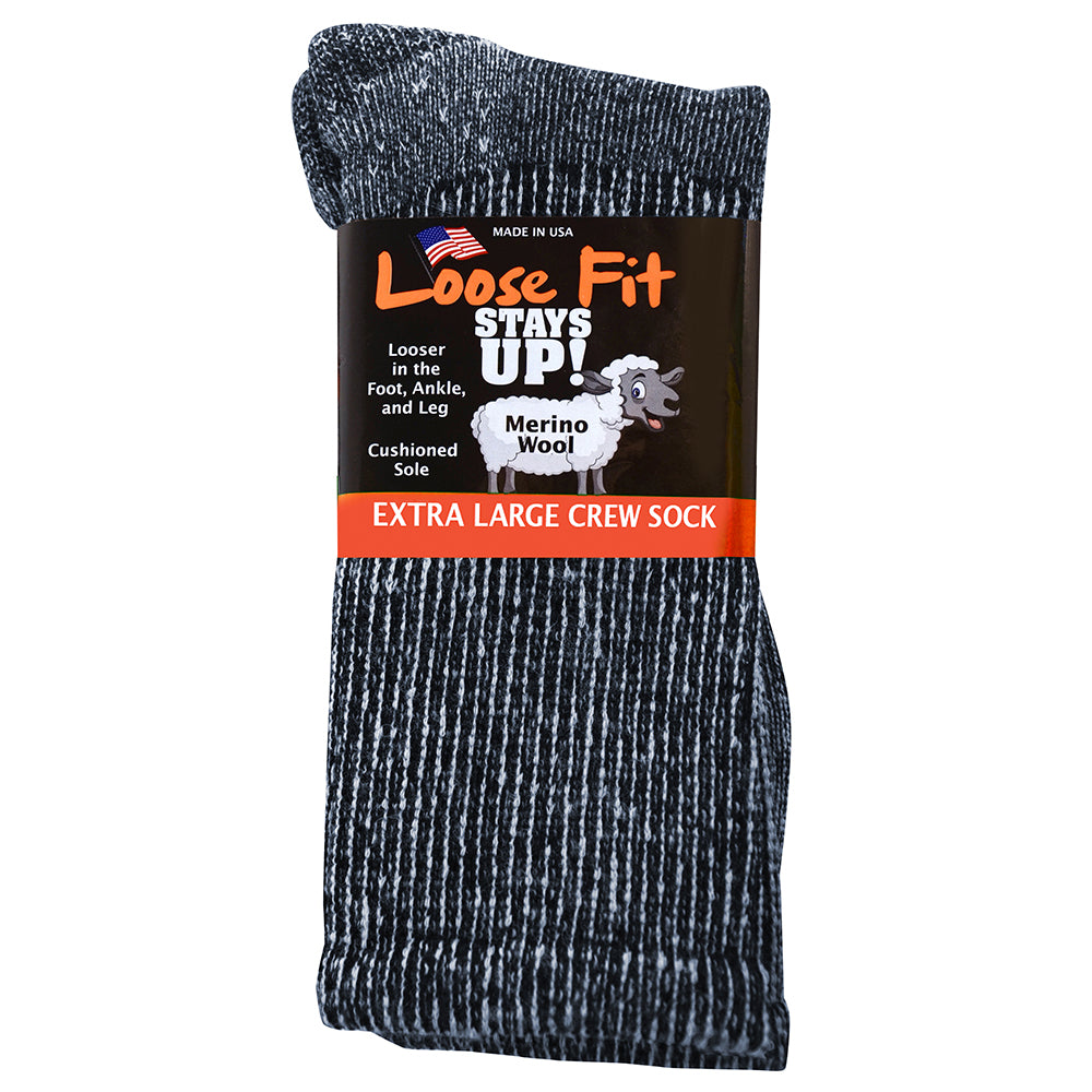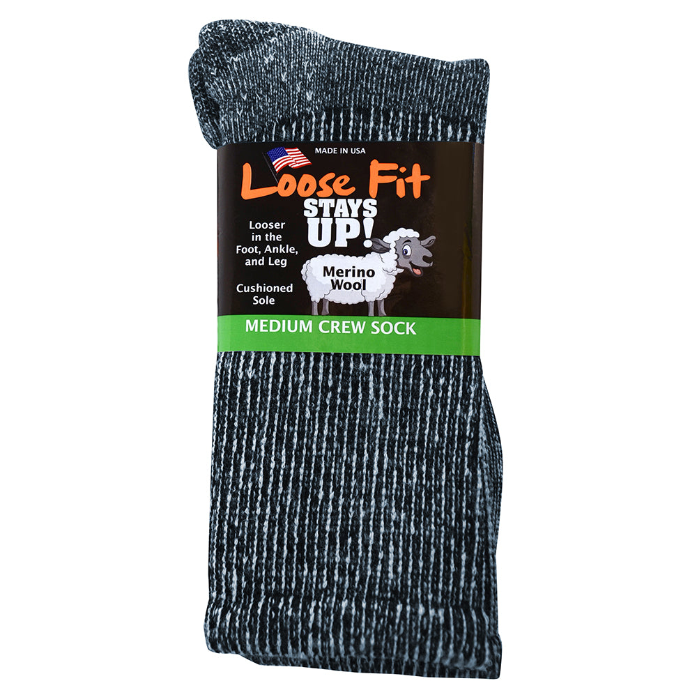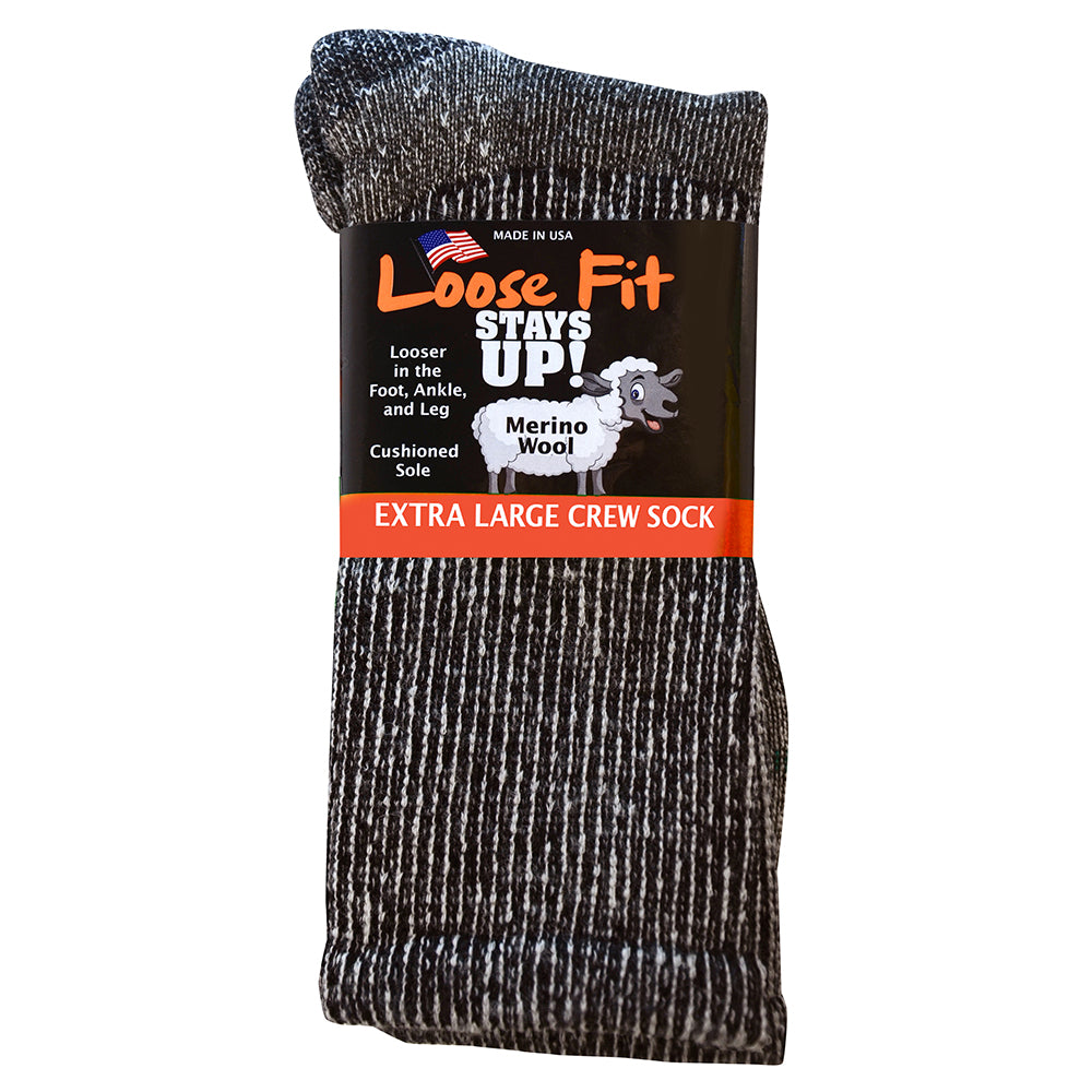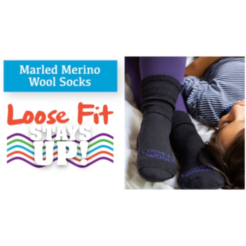 The softest Loose Fit Stays Up Marled Merino Wool socks on the market. Merino wool is a beautiful fiber that is incredibly soft. It has the ability to keep your feet warm in the winter and cool in the summer. With natural properties to wick moisture. They are perfect for walking, hiking, spending time outdoors and just feeling unstoppable. No matter what you are doing, do it in these socks. Feel what people are talking about, it’s time to treat your feet. Available in black, navy, and brown with 4 sizes to ensure a correct and comfortable fit. The socks are unisex and fit shoe sizes from women’s size 6.5 through men’s size 19 up to a 3E width. Made in the USA!